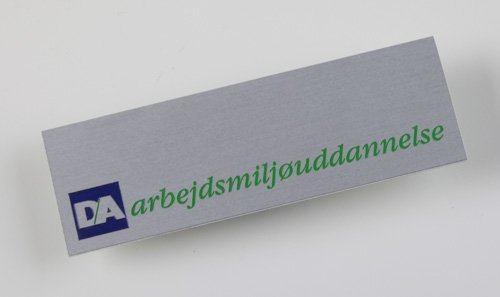 Silketryk er prismæssigt bedst hvis der er tale om produktioner over 100 stk. ofte bestiller kunden 100 stk. reversskilte med silketrykt logo men skal kun bruge individuel navne gravering på de 50 stk. her og nu, så har vi de resterende liggende til efterfølgende gravering.